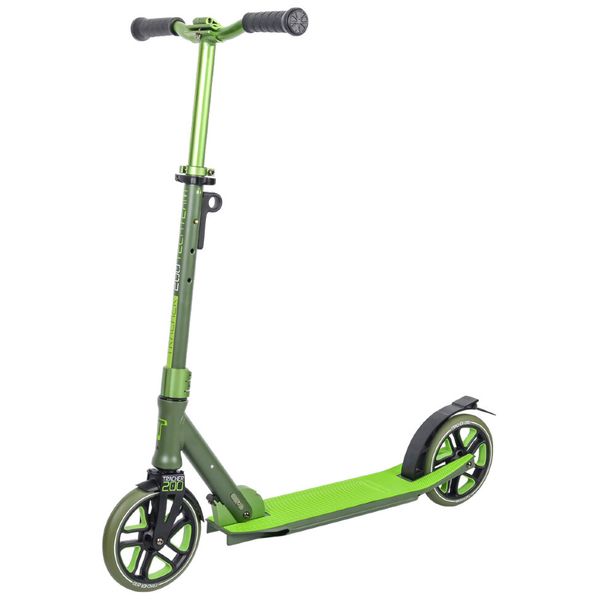 Система складывания выполнена по инновационной и эксклюзивной технологии Easy Hook, позволяющей быстро складывать самокат одним движением. Алюминиевый руль шириной 48,5 см оснащен специальным зажимом для исключения люфта в местах крепления ручек. Руль фиксируется в четырех положениях - от 89 до 104 см от поверхности. Предусмотрена возможность крепления ремешка для переноски. Фирменные двухцветные колеса диаметром 200 мм и шириной 30 мм изготовлены из прочной пластмассы, в качестве рабочей поверхности используется полиуретан высотой 22 ! мм, что в совокупности с подшипниками стандарта ABEC 9 дает отличный накат и амортизацию.