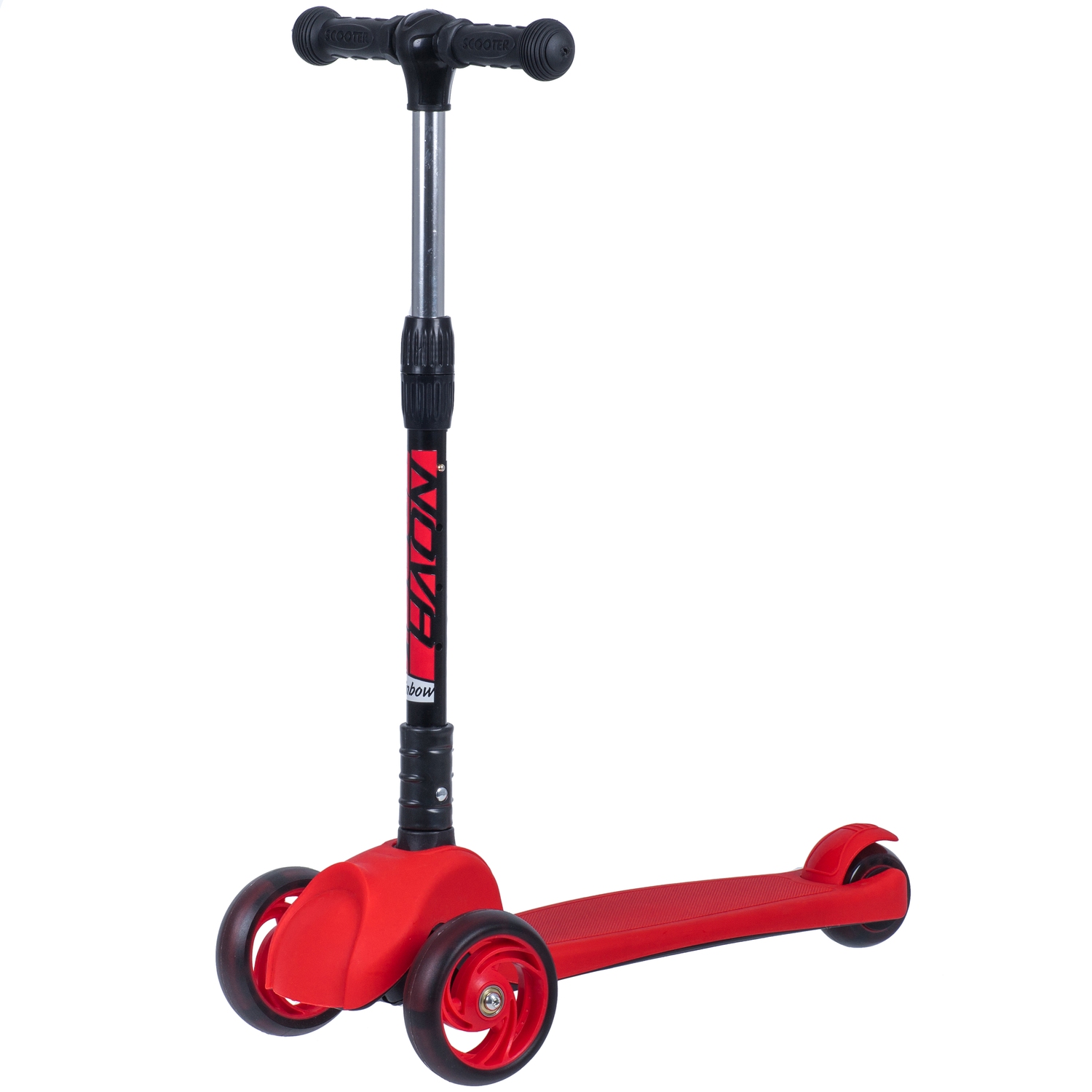 Novatrack RainBow - детский трёхколесный самокат-кикборд, предназначенный для детей от 3 лет. Cветящиеся при движении колеса обязательно обрадуют вашего ребенка и сделают его более заметным в темное время суток. Имеется регулировка руля по высоте в трёх положениях. Самокат выдерживает вес до 50 кг.