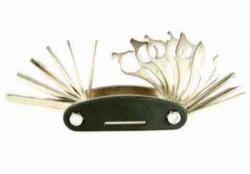 Компактный мультитул с набором шестигранников и накидных головок. Выполнен из стали с пластиковой рукояткой.