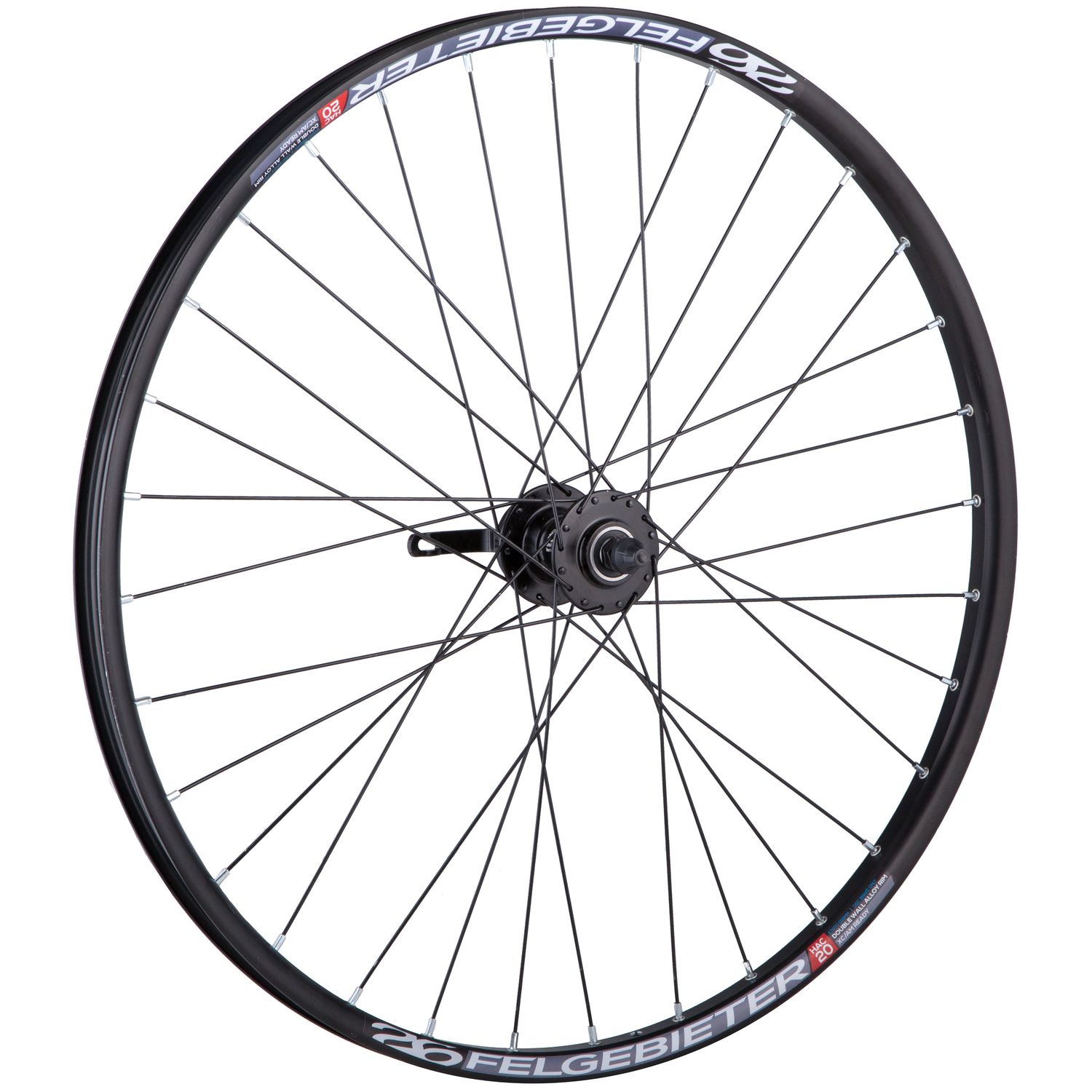 Колесо 26 переднее без резины, двустенный пистонированный алюминиевый обод. Количество отверстий под спицы - 32 шт. Втулка STG B10 алюминий пром. подшипники. Тип крепления ротора - 6 болтов. Ось - эксцентрик.