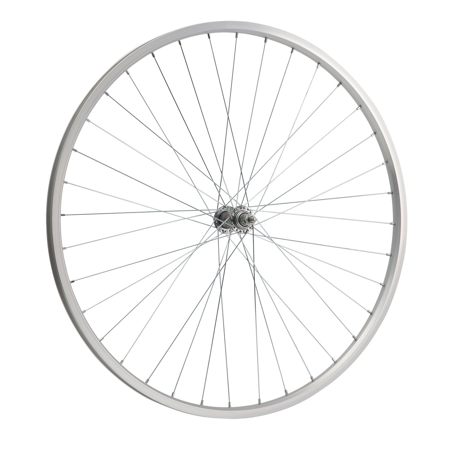 Колесо 28" переднее в сборе(без резины) с двойным алюминиевым ободом на 36 спиц с втулкой под гайку.