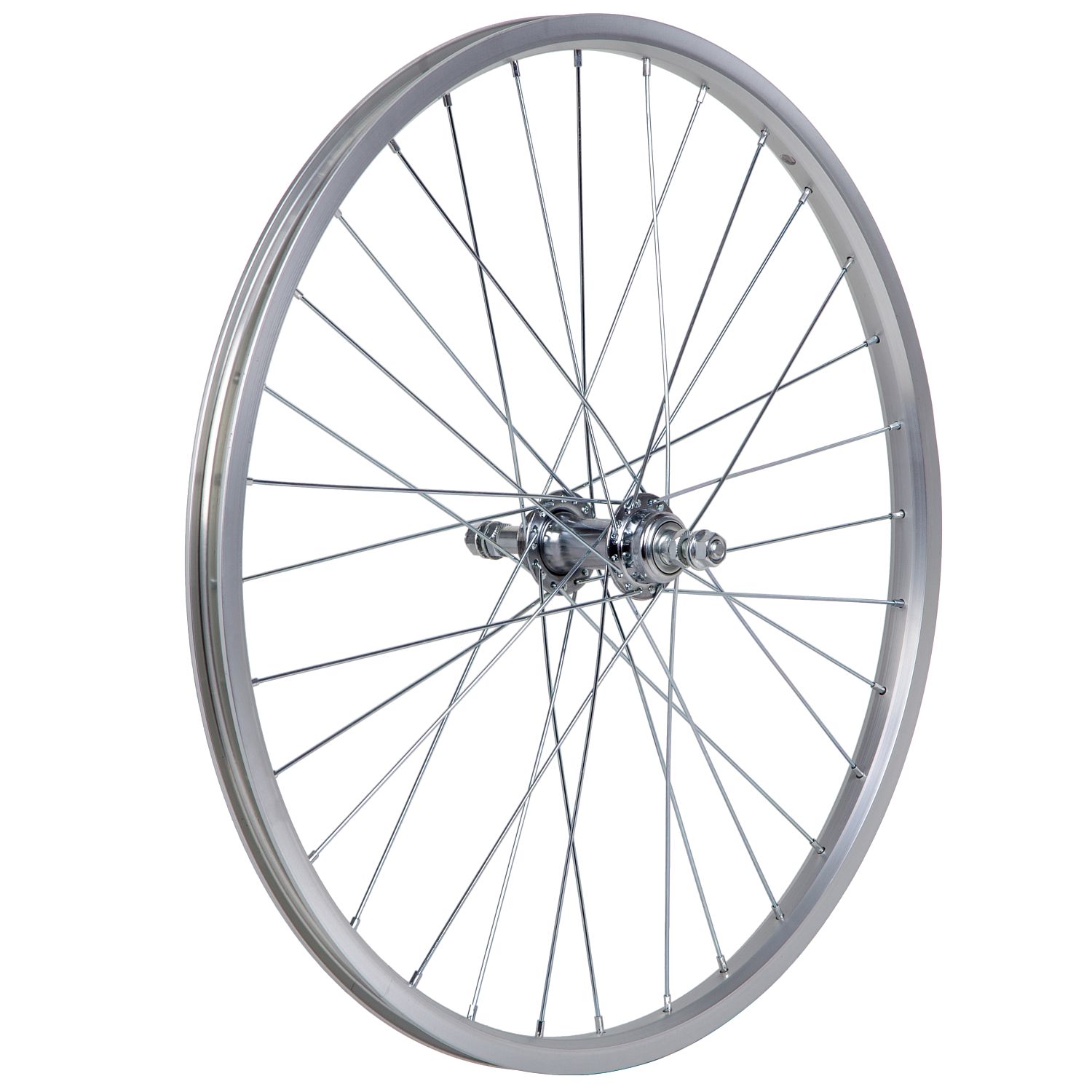 Колесо на 24 дюйма заднеебез резины, одностенный алюминиевый обод на 32 спицы. Втулка сталь под трещотку на 67 скоростей.