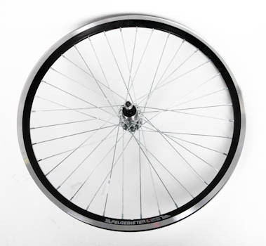 Колесо 24" заднее в сборе(без резины) с двойным алюминиевым ободом на 36 спиц со втулкой под трещетку на 7 скоростей и дисковый тормоз.