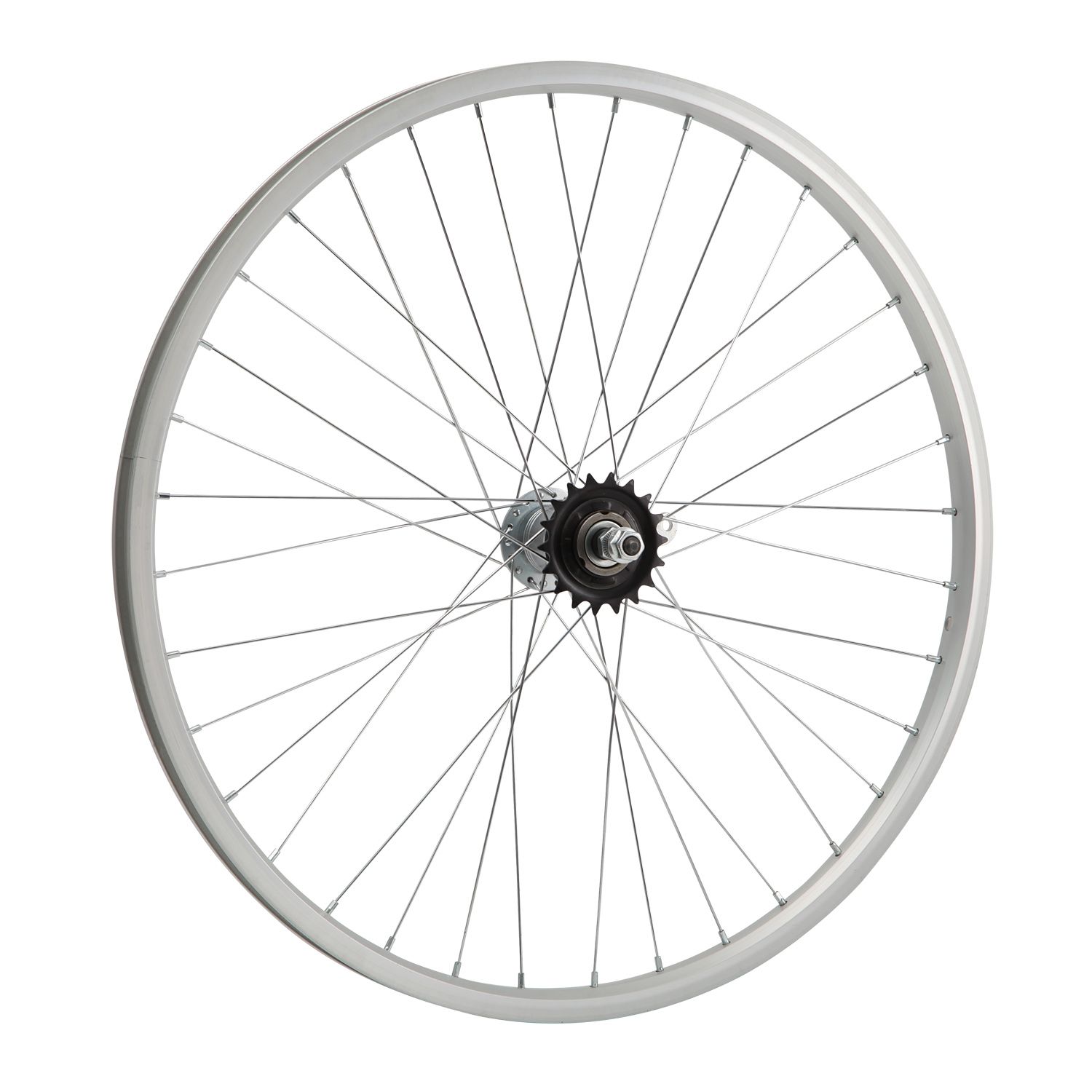 Колесо 24" заднее в сборе(без резины) с одинарным алюминиевым ободом на 36 спиц со втулкой под гайку.