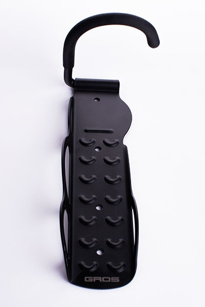 Крепеж на стену для хранения велосипеда. Отлично подходит для установки за дверными выступами, рассчитан на хранение велосипеда колесами к стене. Материал — сталь. В защитной прорезиненной оболочке.
