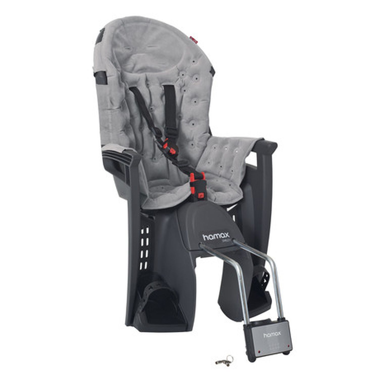 Кресло с откидным механизмом. Трехточечный регулируемый ремень безопасности. Регулировка наклона на 20 градусов. Пояс-пряжка не может быть открыт ребенком. Максимальный вес ребенка 22 кг. Рекомендован с 9 месяцев. Крепёжный кронштейн с замком. Установка на раму 28-40 мм.