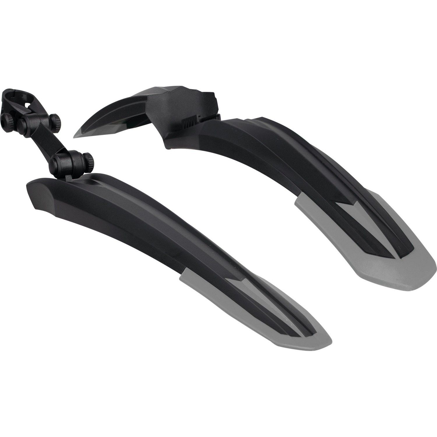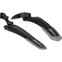 Заднее крыло крепится на подседельный штырь любого диаметра и регулируется по положению и наклону с помощью удобного эксцентрика. Переднее крыло фиксируется в шток вилки через специальный адаптер и легко снимается при необходимости. Широкая защитная поверхность делает крылья эффективными даже для велосипедов с внедорожными покрышками.