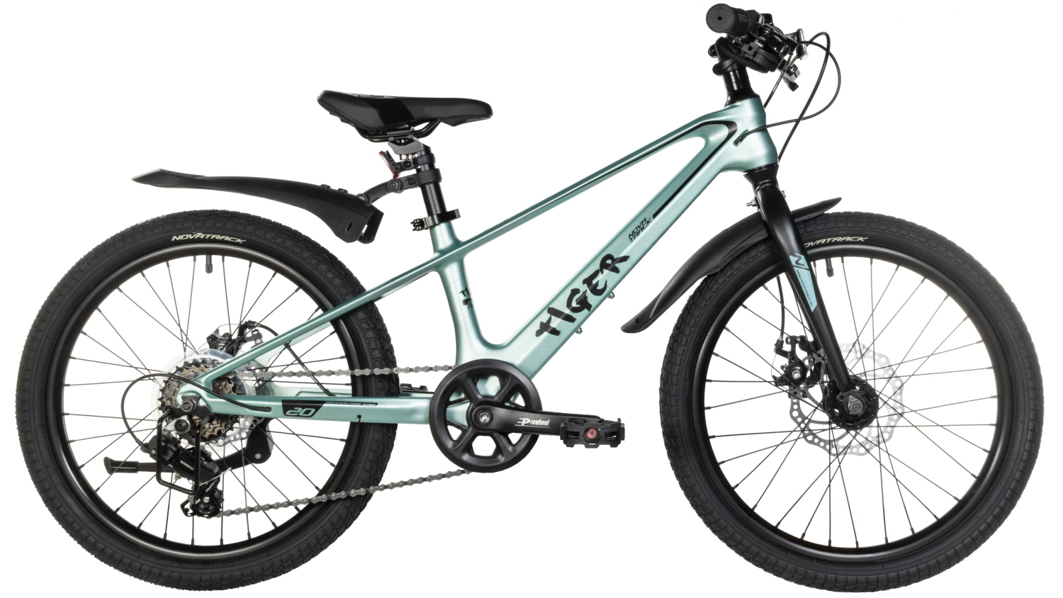 Детский велосипед Tiger на 20-дюймовых колесах 2024 модельного года от компании Novatrack привлекает внимание своим лаконичным дизайном и качественной сборкой. Прочная и легкая магниевая рама способна выдерживать сильные нагрузки, а 6-скоростная трансмиссия с переключателем Shimano Tourney поможет ребёнку подобрать удобную передачу под любые дорожные условия. Велосипед оснащен жесткой вилкой, которая обеспечивает точное управление и стабильность на дороге. Дополнительная пара колес, которую легко снять при необходимости, обеспечивает безопасность и помогает начинающим юным велосипедистам сохранять равновесие во время катания. Дисковые механические тормоза просты в использовании и не вызывают трудностей у ребенка. В комплекте с велосипедом также идут подножка, защита цепи и крылья, что обеспечивает дополнительный комфорт и защиту во время катания.