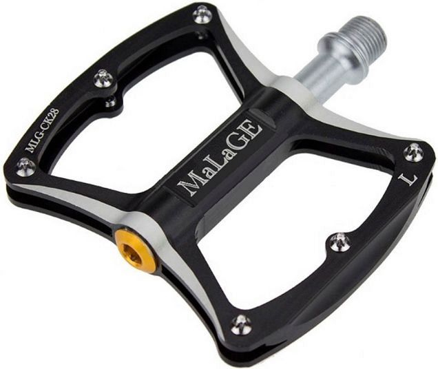 Педали Malage MLG-CK28 алюминиевые CNC, 85х101х11мм, ось CrMo, 3 промподшипника, сменные шипы, вес 278г., чёрные.