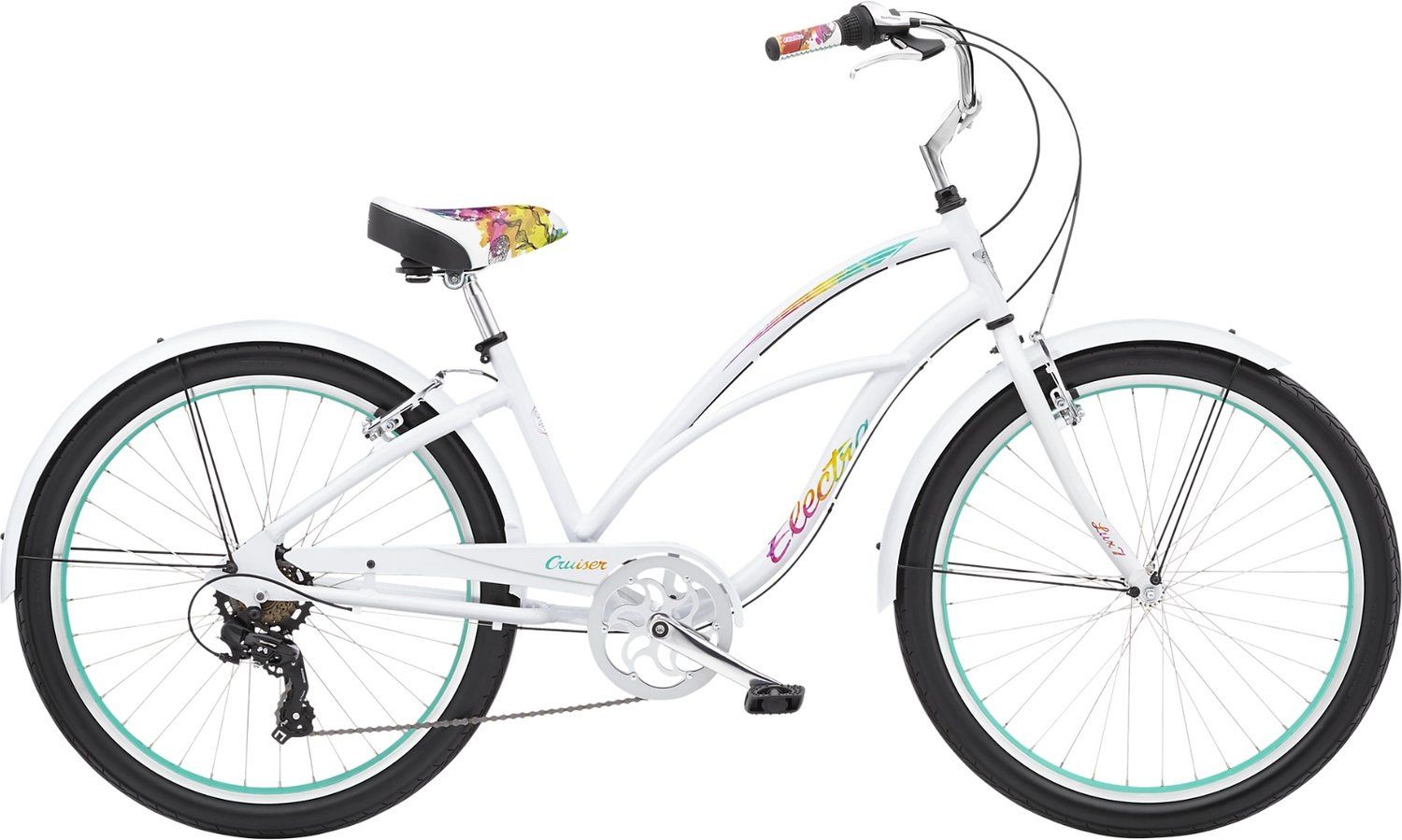 Обода из анодированного алюминия и покрышки Electra Retrorunner размером 24x2.125" дают отличное сцепление с дорогой и плавный ход. Руль Electra Cafe и кастомные грипсы создают комфортные условия для управления, а седло Electra Custom Comfort с эластомерными пружинами отвечает за удобство даже при длительных поездках.
