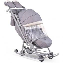 Коляска оснащена высоким складным трёхсекционным козырьком с меховой окантовкой, который защищает от солнца и ветра. Дискретное перемещение козырька с помощью трещотки позволяет легко регулировать его положение. Механизм смены полозьев на колеса и выдвижная колесная база обеспечивают универсальность, позволяя использовать коляску как на снегу, так и на асфальте.
