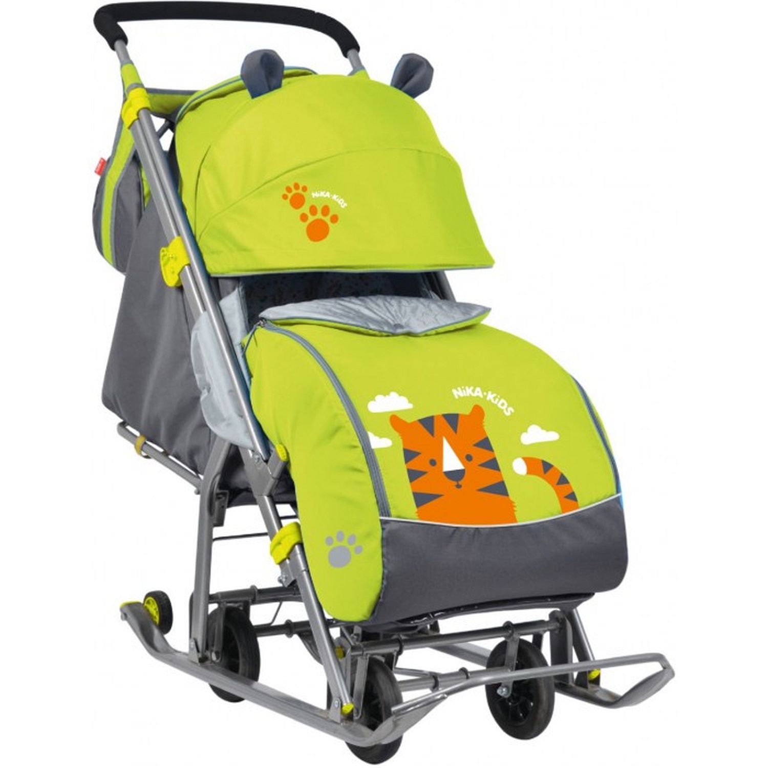 Ника Детям-7 - уникальные санки-коляска с большими выдвижными колесами на шасси. Прочные, безопасные, комфортные санки-коляска станут надежным помощником в зимних прогулках.