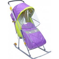 Складные санки-коляска "Тимка Люкс" - они предназначены для перевозки детей в положении "сид" и "полулёжа" от 1 года до 4-х лет по плотному снегу или льду. Модель оснащена колёсиками, что делает возможным её перемещение по асфальту и другому твёрдому покрытию. При необходимости родители могут перекинуть ручку и везти ребёнка лицом к себе, общаясь с ним. У санок имеется мягкий и тёплый чехол для ножек со светоотражающей окантовкой для безопасности малыша в вечернее время. От осадков и ветра кроху защищает прозрачный тент, присоединяемый к козырьку. Санки оснащены большим капюшоном, который позволяет ребёнку чувствовать себя комфортно в шапке с помпоном.