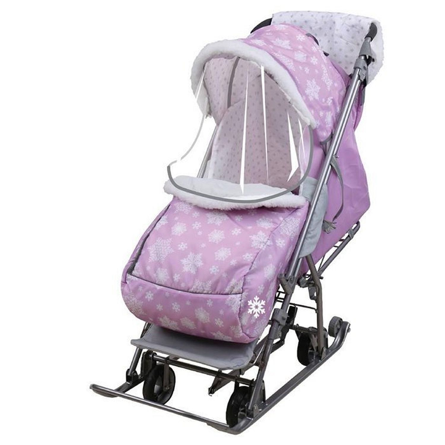 Функциональные санки-коляска - прекрасный транспорт для малыша в зимний период. Теплый чехол на ножки и складной капюшон надежно защитят от ветра, снега и мороза. В таких санках ребенку будет тепло и уютно. Санки очень удобны в эксплуатации. Тканевый чехол с утеплителем обладает прекрасными гигроскопическими свойствами. Спинка регулируется, так что малыш сможет с комфортом поспать во время прогулки. Также имеется муфта для мамы, чтобы возить санки было не холодно.