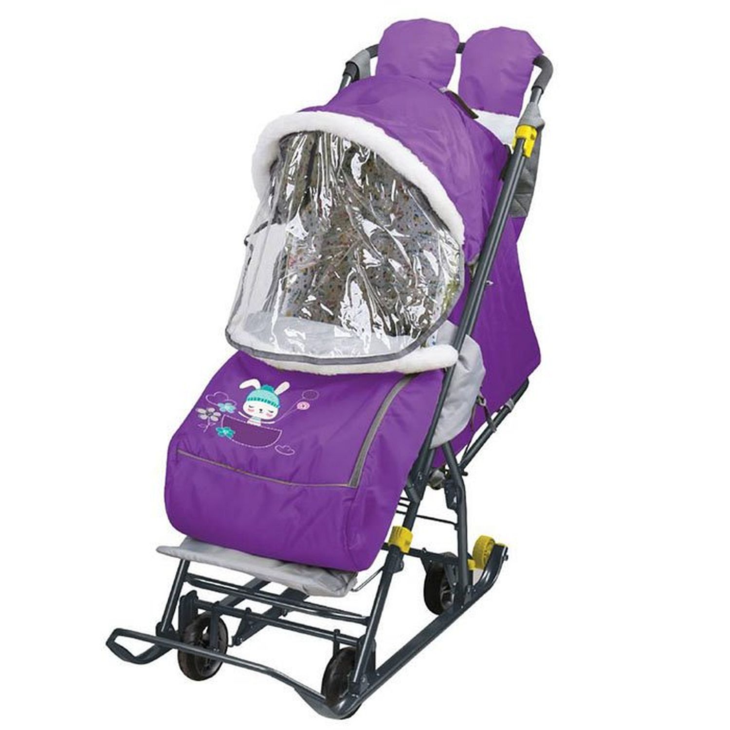 Функциональные санки-коляска - прекрасный транспорт для малыша в зимний период. Теплый чехол на ножки и складной капюшон надежно защитят от ветра, снега и мороза. В таких санках ребенку будет тепло и уютно. Санки очень удобны в эксплуатации. Тканевый чехол с утеплителем обладает прекрасными гигроскопическими свойствами. Спинка регулируется, так что малыш сможет с комфортом поспать во время прогулки. Также имеется муфта для мамы, чтобы возить санки было не холодно.