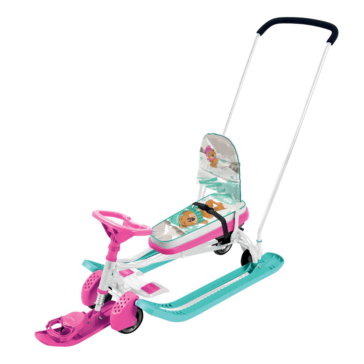 Снегокат с механизмом выдвижных шасси и родительской ручкой-толкателем для прогулок с детьми от 4 до 7 лет. Модель 2 в 1: колеса и полозья позволяют свободно передвигать снегокат по любой дороге. Преимущества: Механизм выдвижных шасси; Удлиненное мягкое сиденье; Спортивный руль; Складная спинка; Ремень безопасности; Буксировочный трос с автоматической намоткой; Усиленный широкий тормоз; Родительская ручка-толкатель; Грузоподъёмность до 100 кг; Набор наклеек в комплекте.