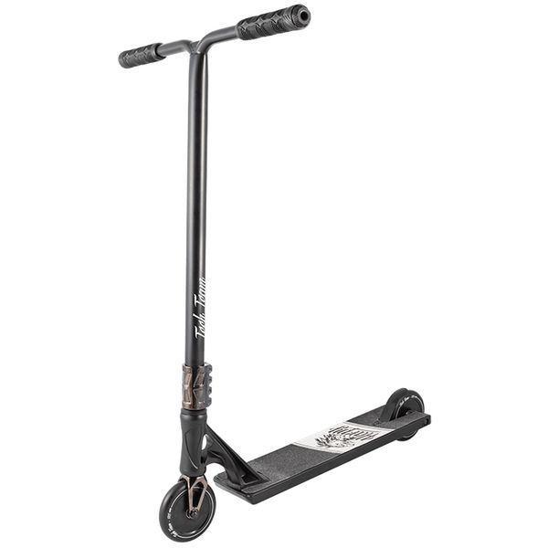 Harpy Гарпия - хищная птица семейства ястребиных, в греческой мифологии отождествляемая с различными проявлениями бури - такой стиль очень близок по духу многим райдерам, именно поэтому такое название производитель дал новой модели трюкового самоката. Усиленный руль черного матового цвета с мягкими резиновыми грипсами и пластиковыми барендами, выполнен из хромолевой стали CrMo. Высота руля от зажима до ручек 650 мм, ширина - 580 мм, диаметр - 34,9 мм. Надежный четырехболтовый SCS Standart Compression System зажим и фрезерованная вилка самоката изготовлены из анодированного алюминия, интегрированная рулевая на промышленных подшипниках. Колеса 120x24 мм, на Hollow core - дисках c SHR Super High Rebound - сверхвысокий отскок - полиуретаном, жесткостью 88A. Подшипники Abec 9. Прямоугольная дека выполнена из сплава AL 6061, длина деки 530 мм с алюминиевыми дропаутами, ширина - 120 мм, footspace - 360 мм. Модель выпускается в черном цвете с деталями - вилкой, зажимом и дисками колес анодированными в неохром бензиновый, радужный или в набирающий популярность анодированный черный цвета. Надписи в нижней части деки выполнена с помощью устойчивой к износу лазерной гравировки.