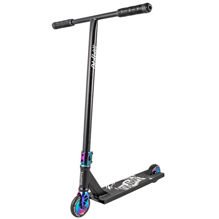 Old Boy - стритовый трюковый самокат от бренда Tech Team. Руль самоката T - образный, выполнен из хромолевой стали. Высота руля от зажима до ручек 650 мм, ширина - 600 мм, диаметр - 34,9 мм. Зажим и вилка самоката изготовлены из алюминия, фрезерованные с обновленным дизайном. Компрессия HIC Hidden Compression System, интегрированная рулевая на промышленных подшипниках. Колеса 110x24 мм, на Hollow core - дисках c SHR Super High Rebound - сверхвысокий отскок - полиуретаном, жесткостью 88A. Подшипники Abec 9. В комплекте с самокатом идут комплект фирменных стикеров и ключей-шестигранников. Вес самоката 4,1кг.