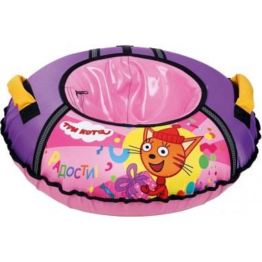 Тюбинг с рисунком «Три кота» изготовлен из прочного тента, который устойчив к морозам до 28 градусов, все швы усилены капроновой лентой.