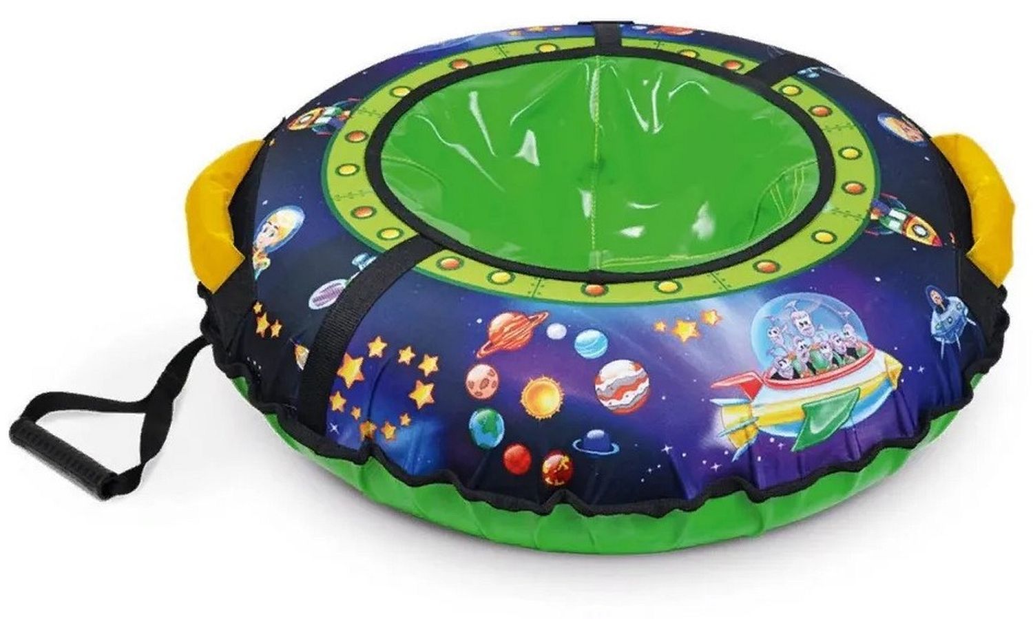Детские тюбинги – прекрасная альтернатива санкам и одно из главных зимних развлечений, возможность весело и активно провести время, а также удобное транспортное средство, позволяющее родителям ускорить передвижение по улицам. Это и отличный способ семейного отдыха: прокатиться с горы не откажутся даже взрослые. юбинги-ватрушки от компании ""Nika"" отличаются огромным разнообразием ярких принтов и форм. Легкие и удобные тюбинги придутся по душе любому малышу. Тюбинг устойчив к морозам до -25 градусов. Верх и дно тюбинга выполнено из армированного ПВХ материала высокого скольжения плотностью 630 гр/м. Швы прошиты плотной лавсановой нитью. Все швы и посадочное место усилены прочной ременной стропой. Имеются буксировочный ремень и петли для крепления букстровочного ремня. Имеются удобные ручки.