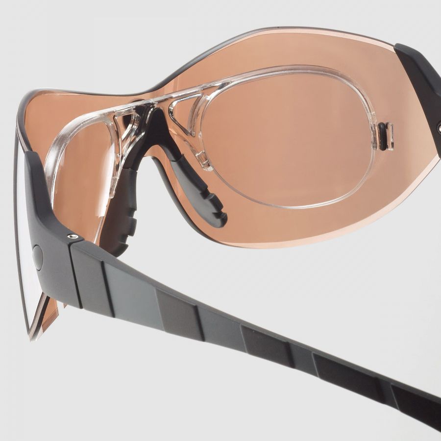 Носовая часть: Полностью настраиваемая носовая часть очков выполнена с использованием упругого полимера СlickFace, повторяющего форму Вашего носа и обеспечивающего безупречное прилегание. Верхний слой перегородки закрепляет вставки с диоптриями и служит для стабилизации линз.