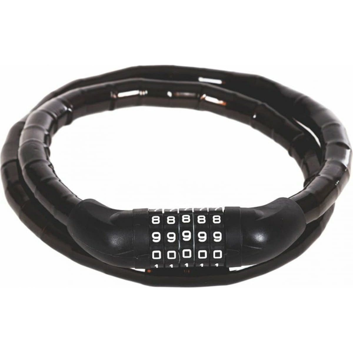 Тип замка – кодовый замок. Вид замка – шарнирный. Диаметр троса – 18 мм. Длина троса – 1200 мм. Материал оплетки – PVC. Значность – 5.